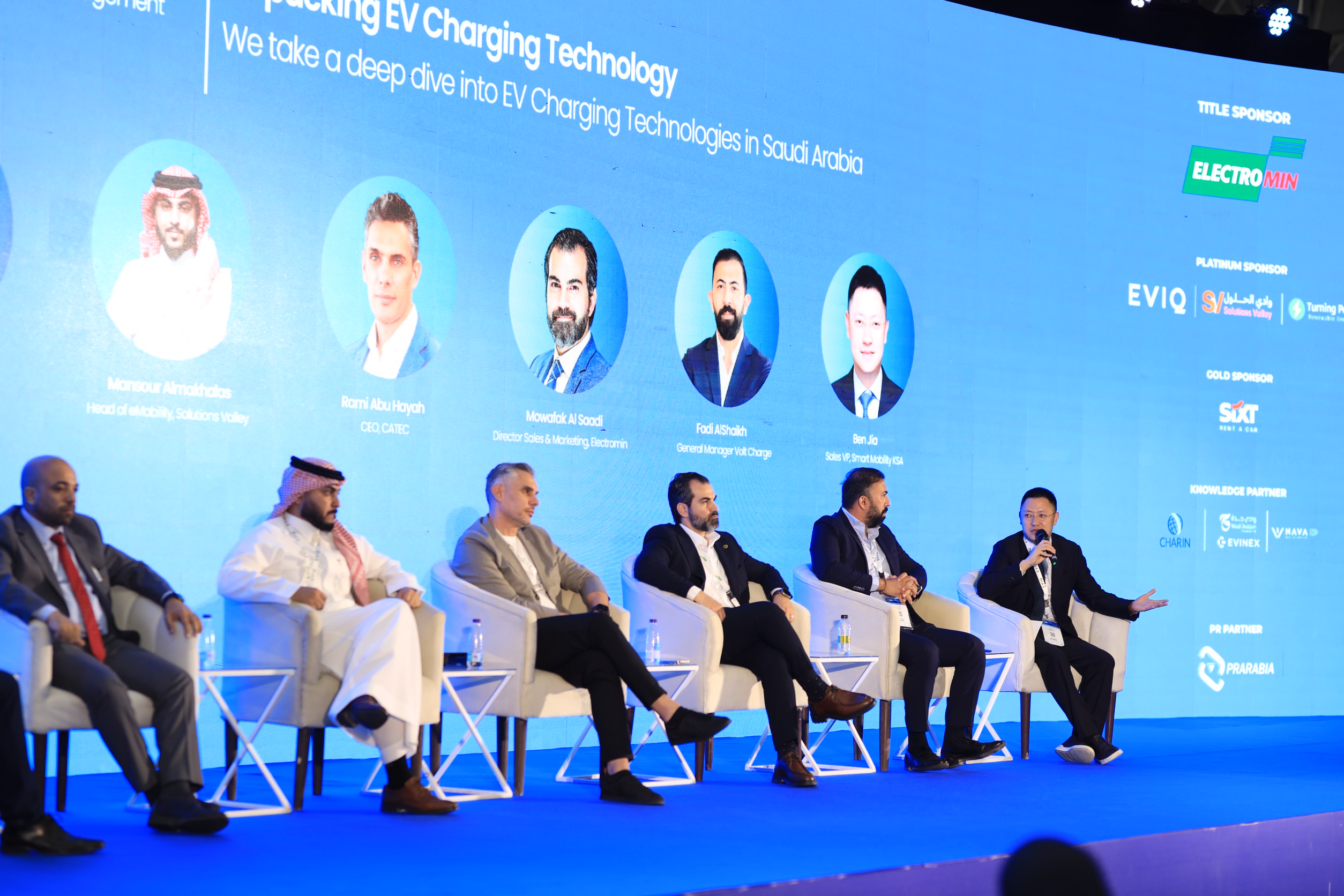 EV Auto Show Riyadh 論壇開幕當天,Smart Mobility銷售副總賈奔與 ElectrominSolutions Valley等其他沙烏地主要 EV 品牌代表與機構共同參與座談,探討沙烏地新興的 EV 充電版圖。除了分享中國與歐洲的市場經驗,闡述 Smart Mobility 的產品設計理念——強調針對區域環境的耐用性、安全性與美學。「在開發變色龍(Anoles Series ) 皇家(Royal Series)系列時,我們特別為沙烏地的高溫環境進行設計,確保穩定表現並避免過熱問題;同時產品也完成 UV 測試,並融入在地化設計元素。」他表示。